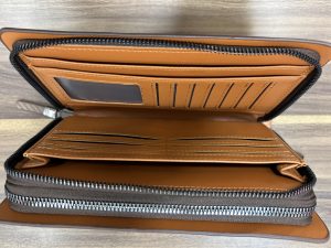 商品名: 長財布②(ノーブランド) サイズ: 約 横22cm 縦12cm マチ幅4.5cm状 態: 未使用(外装無し) 特 徴: 素材合皮、ファスナー×2(コイン除く)、カードポケット×13、ハンドストラップ付き ※ファスナー1か所、少々ひっかかり有り